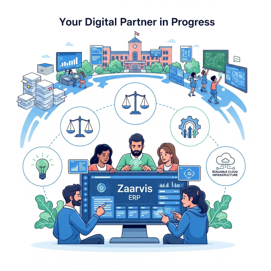 Zaarvis is a strong product platform of Mega Tech Bot Pvt. Ltd which helps the schools, businesses and enterprises since 2020. Designed ERPs and Softwares to save time, minimize human intervention and expand operations, Zaarvis makes management easy and stress-free.